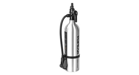 Diseno 2 en 1 este producto unico funciona como un minicompresor de aire que permite que cualquier bomba de suelo comprima aire en este deposito de aire de aluminio de 1000 cc que libera rapidamente un gran volumen de aire para montar los talones de las ruedas sin camara el cabezal tubibooster de aluminio tambien funciona como inflador de co2 y es compatible con los cartuchos de co2 topeak roscados de 16 g 25 g caracteristicas compatibilidad del cabezal de la bomba bombas presta compatibilidad con valvulas de neumaticos valvulas presta schrader pulsar para inflar deposito de aire un litro almacena hasta 200 psi 14 bar de presion de aire varia con la capacidad de la bomba presion de trabajo 1800 psi 124 bar material aluminio caracteristica anadida compatible con cartuchos de co2 topeak roscados de 16 g 25 g incluye camara de aire de un litro tamano 6 x 4 6 x 2 5 cm 2 4 x 1 8 x 1 inflador 28 5 x o8 1 cm 11 2 x o3 2 camara de aire peso 32 g 1 13 oz inflador 820 g 1 81 lb camara de aire