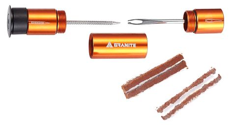 Weighing at only 35 grams the kit stashes away inside your handlebar ready for the unexpected it s so small and invisible you ll forget you have the kit until you pop granite design stash tire plug kit includes a tire reamer a tire fork and 4 tire plugs the kit also comes with 2 end cap sizes to allow seamless installation with open end grips or lock on grips features dimensions 30 x 30 x 96mm large cap 21 8 x 21 8 x 96mm small cap weight 35g incl side cap fitting open end grip or lock on grip with 18 to 21mm orifice and 10cm straight section at the bar end package content tire plug kit reamer fork and center tube 2 x 1 5mm and 2 x 3 5mm tire plugs expansion rubber 30mm side cap and 22mm side cap